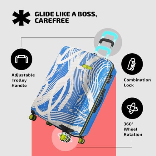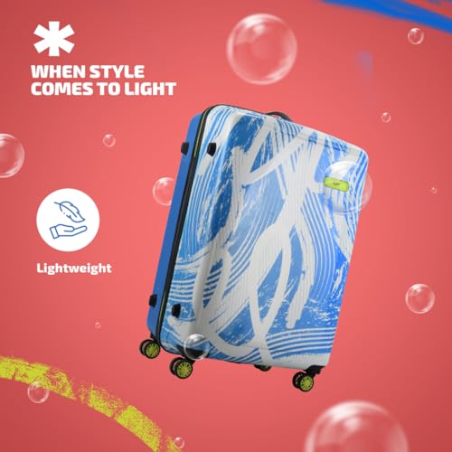 Skybags ABS Stroke Large Size Hardshell Luggage (75 Cm) | Printed Luggage 4 Wheel Inline Trolley Bag with 8 Wheels and in-Built Combination Lock | Unisex, Blue