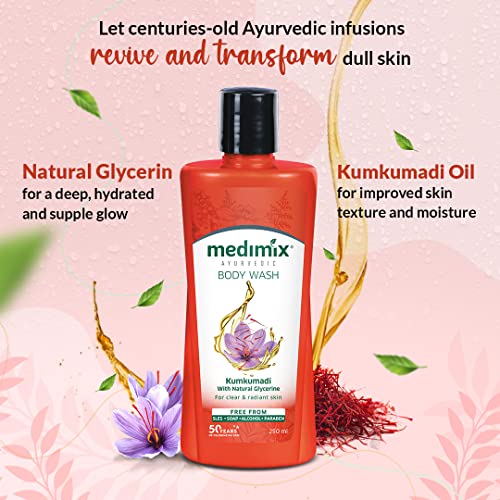 • For clear and radiant skin Use medimix kumkumadi body wash; Free from soap, paraben, sles, alcohol