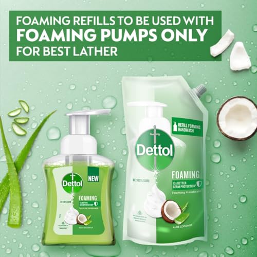 Technical Details, Be 100% sure to protect your skin from germs and bacteria. Dettol foaming handwash is a moisture-rich foam that removes dirt and germs while being gentle on skin. This hand wash provides soft and rich lather, leaving behind clean hands and mild aloe coconut fragrance. Dettol handwash is dermatologically tested. Dettol handwash are free from parabens/ TCC and are ph balanced.,