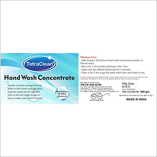 - Tetraclean powder to hand wash gel formula make 10 L of hand wash gel easily. It is soft on skin but tough on germs.