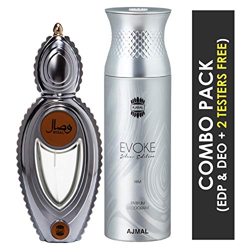 Specification: Ajmal Wisal EDP Floral Musky Perfume 50ml for Women and Evoke Silver Edition Him Deodorant Spicy Floral Fragrance 200ml for Men