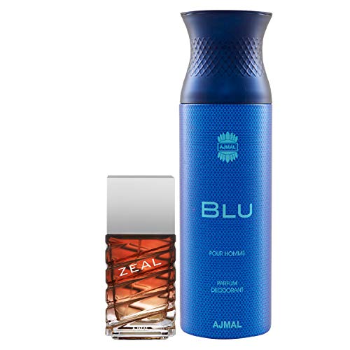 Ajmal Zeal EDP Aquatic Woody Perfume 100ml for Men and Blu Homme Deodorant Aquatic Woody Fragrance 200ml for Men