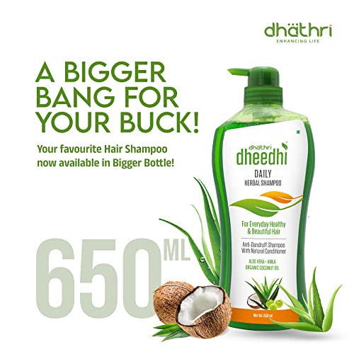 Dhathri Dheedhi Daily Herbal Shampoo to Reduce Dandruff & Promote Hair Growth, Ayurvedic Shampoo to Restore Hair Shine & Strength (650ml)