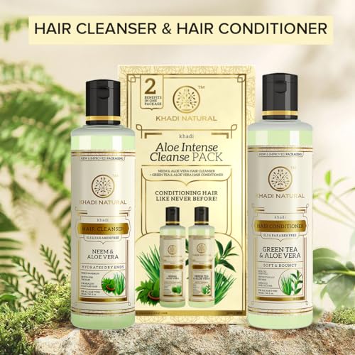 Khadi Natural Aloe Intense Cleanse Pack | Shampoo & Conditioner| Anti-Hair Fall | For Thick & Strong Hair |Goodness of Neem and Aloe Vera| SLS &…,