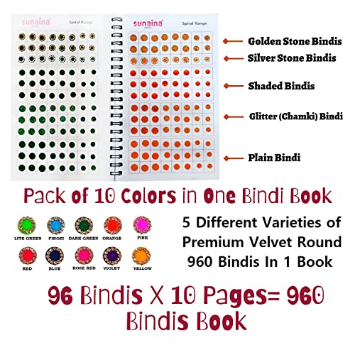 - This Plain Glitter Crystal Diamond Stone sticker Bindis booklet contain Mix Size & variety Bindis booklet contain 948 bindis of total 10+ Colours of Multicolour Bindis For Girls