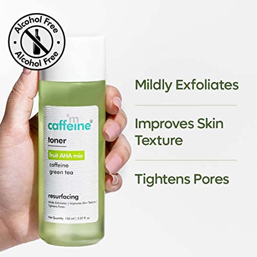 mCaffeine Alcohol Free Green Tea Face Toner for Pore Tightening & Improving Skin Texture | Toner With Fruit-AHA Mix & Caffeine for Glowing Skin |…,