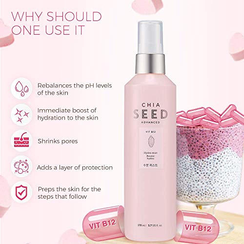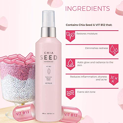 THE FACE SHOP Chia Seed Hydro Hydrating Mist, The Face Shop Chia Seed Hydro Mist is a refreshing facial mist with chia seed extract and pink vitamin (B12) that helps soothe and calm dry, irritated skin. Provide skin with a little boost of hydration, giving you an instantly refreshed feeling using this.,