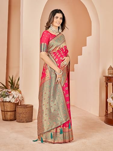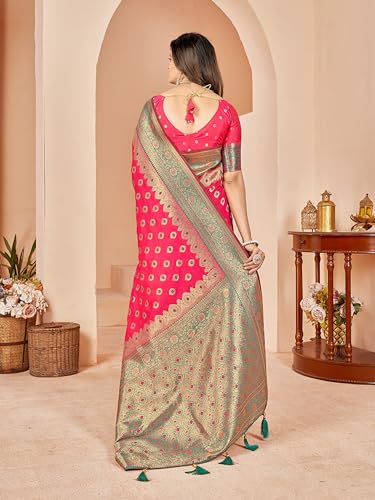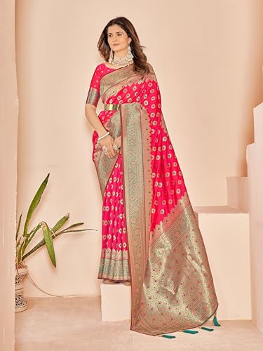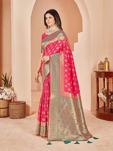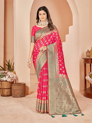 Mehrang Cotton Banarasi Silk Saree for Women With Unstitched Blouse Piece,