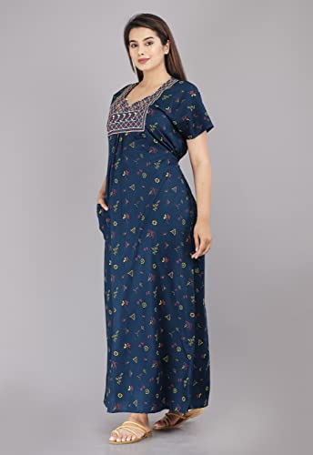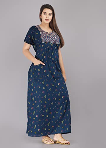 Deepali creation Cotton Embroidery Nighty for Womens/Girls Regular Nighty Rajasthani Nighty Gown Jaipuri Nighty Jaipuri Gown Maxi Gown (Free Size, Navy Blue)