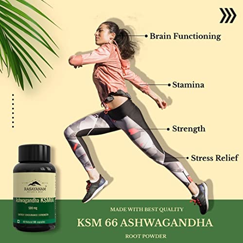 Rasayanam Ashwagandha KSM-66 (500 mg) | Extra Strength Natural Formulation | Support strength & energy | Withania Somnifera Extract – 60 Vegetarian Capsules