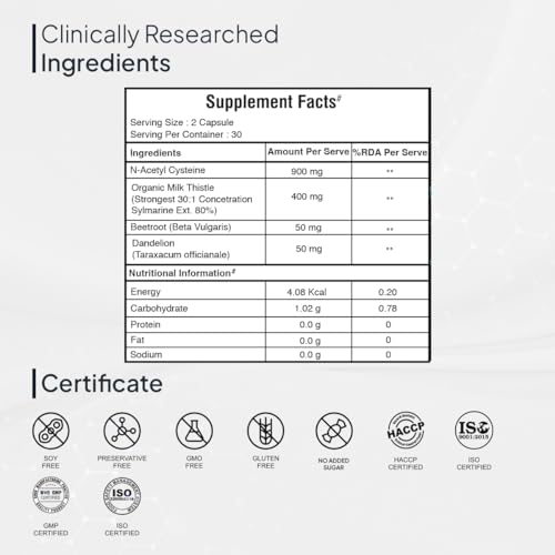 • Antioxidant- All ingredients in the Miduty Liver Detox product are liver-friendly. This product contains NAC, an antioxidant that helps to normalize the level of liver enzymes and avoid liver damage.