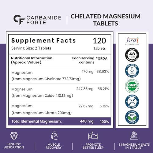 - ✔ HIGHEST ABSORPTION, HIGHEST BIOAVAILABILITY WITH PURE MAGNESIUM GLYCINATE SUPPLEMENT: Magnesium Glycinate is absorbed 4 times better than other Magnesium Salts like Magnesium Oxide, Magnesium Citrate powder and Sulphate. Chelated Magnesium is absorbed faster and thus gives faster…