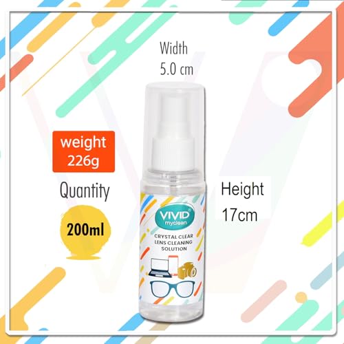 Specification: Vivid Lens Cleaning Solution Kit 200 ml With Microfiber Cloth | Contain NO Detergent Foam | Perfect Repair Cleaner for Spectacle Sunglasses Eyeglasses Camera Lenses Goggle…