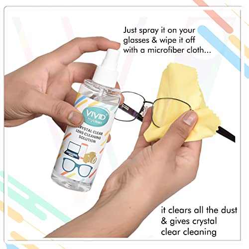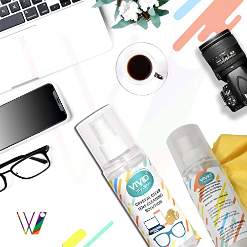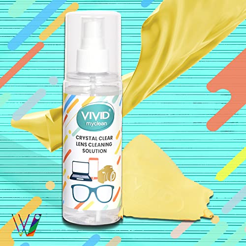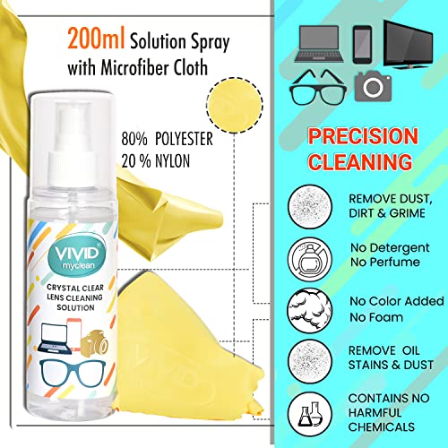Vivid Lens Cleaning Solution Kit 200 ml With Microfiber Cloth | Contain NO Detergent Foam | Perfect Repair Cleaner for Spectacle Sunglasses Eyeglasses Camera Lenses Goggle…,