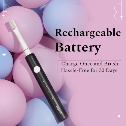 - POWER PLAY: 40 DAYS OF UNINTERRUPTED RECHARGEABLE BRILLIANCE! Boasting an impressive battery life of 40 days on a single charge, this toothbrush eliminates the hassle of frequent recharging. The rechargeable functionality not only enhances user convenience but also promotes eco-friendly practices by reducing the need for disposable batteries, providing a reliable and long-lasting oral care solution.