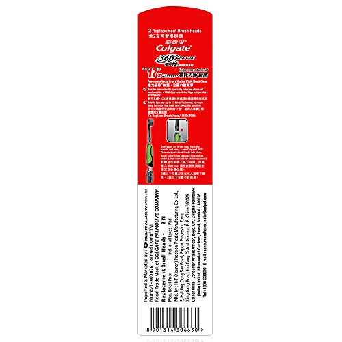 - 2 Replacement heads for Colgate 360 Charcoal Battery Powered Electric Toothbrush