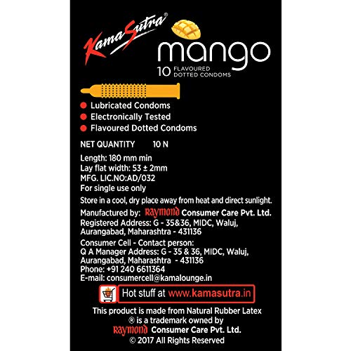 Specification: KamaSutra Mango Flavoured Dotted Condoms for Men 10 Count