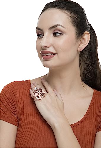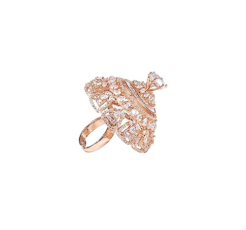 Auraa Trends Rhodium Plated American Diamond Zircon Gold Ring For women and Girls,