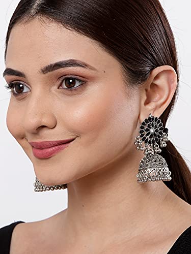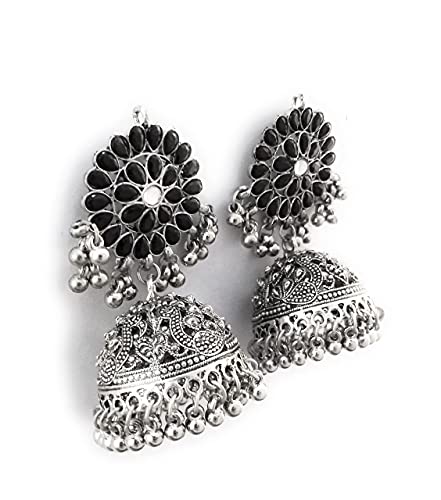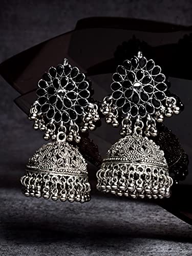 Specification: Karatcart Tribal Collection Traditional Indian Antique Oxidised Silver Stylish Afghan Jhumka Jhumki Earrings for Women Girls