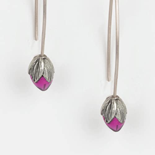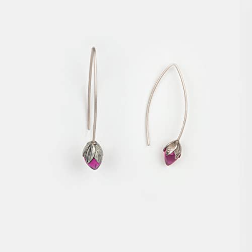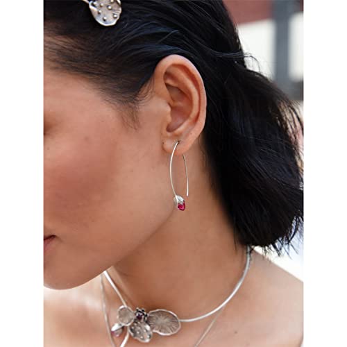 - Silver Lotus Wire Earrings. Crafted in Oxidised 925 Silver with Synthetic Pink Sapphire. Uniquely handcrafted, no two pieces are exactly alike!