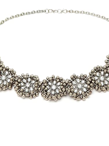 Specification: Karatcart Oxidised Silver Floral Silver Ball Beaded Kundan Metal Hairband for Women – Silver