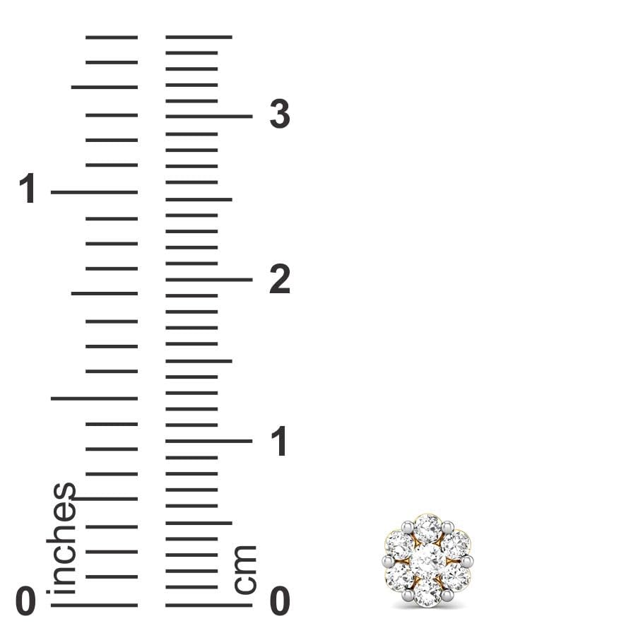 - This Gold nosepin has a total of 7 real Diamonds beautifully captured in a Prong setting weighing 0.18 carat, dimensions of the nosepin are 5.6 mm in width and 6 mm in height. They also bear the BIS hallmark & HUID which is inscribed directly on the product. Please note that the BIS hallmark & HUID is not a separate certificate it is an official mark that certifies the purity and authenticity of the gold product.
