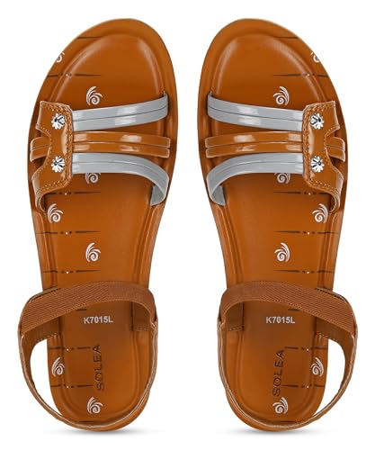 PARAGON K7015L Women’s Tan Sandals | Stylish Velcro Sandals with Cushioned Soles | Comfortable Everyday Sandals for Outdoor Use,