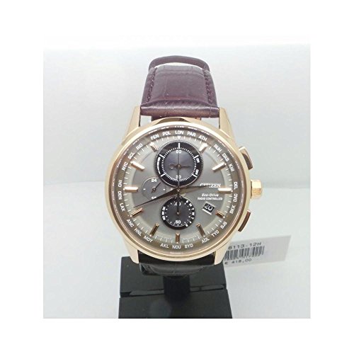 Specification: Citizen Leather Men Reloj Eco-Drive At8113-12H Crono Hombre R/C H804 Analog Bracelet Watch, Grey Dial, Brown Band