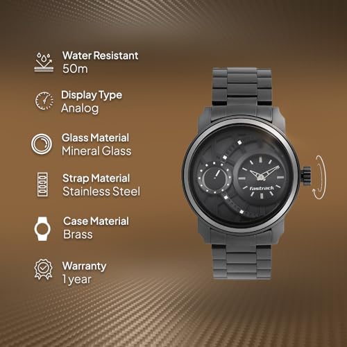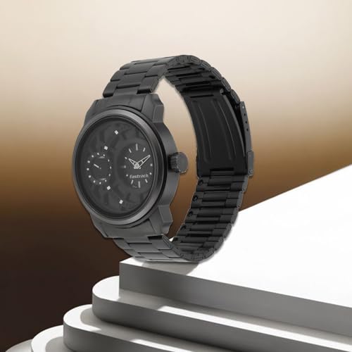 Specification: Fastrack Men Quartz Analog Black Dial Stainless Steel Strap Watch for Guys-NS3147KM01