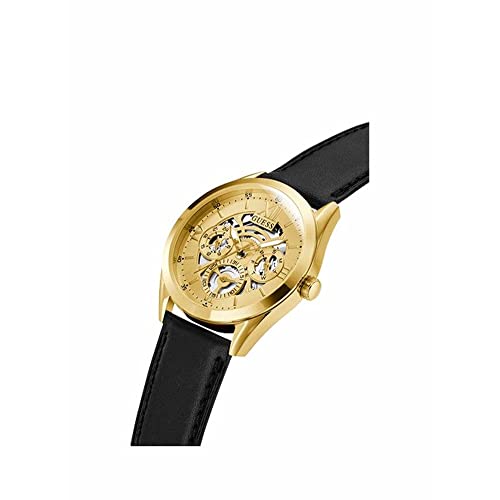 GUESS Leather Analog Gold Dial Men Watch-Wgusgw0389G2, Black Band,