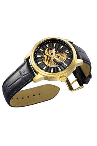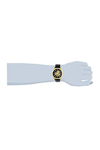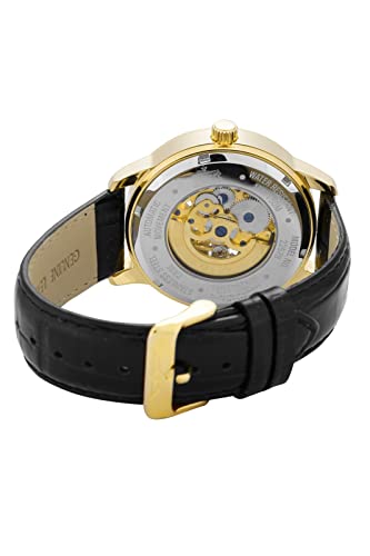 - Black Dial with Gold Tone Skeletonized Center, Gold Tone and White Hands and Gold Tone Hour Markers