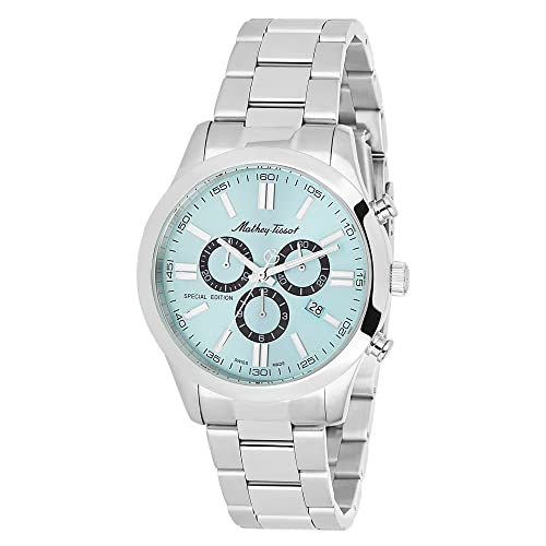Mathey-Tissot Stainless Steel Swiss Made Special Edition Chronograph Blue Dial Men Analog Watch – H455Chsk, Silver Band,