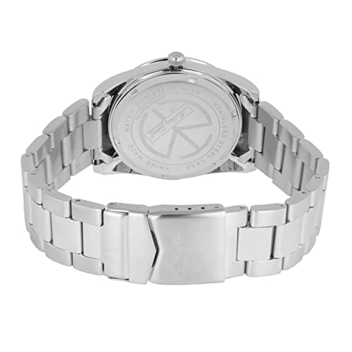 - Band Colour: Silver, Band Material: Stainless Steel, Calendar Type: Date, Water Resistance Depth: 30 Meters
