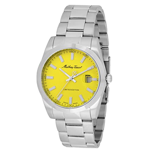 Mathey-Tissot Stainless Steel Swiss Made Yellow Dial Limited Edition Analog Watch for Men – H451J, Silver Band,