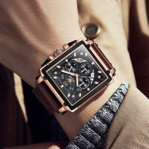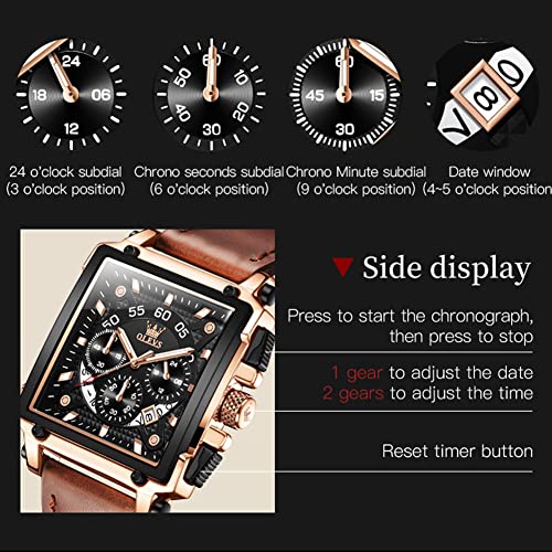 - ⌚ Leather Watches: fashion black square case, perfect combination of leisure and business,Leather strap, soft and stylish. Fits your wrist perfectly, comfortable to wear, and the strap is breathable and waterproof.
