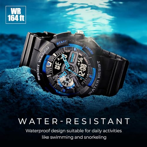 - Water Resistant: Water Resistant to 50m (165 ft.) in general, suitable for Hand Wash, Rain Day, Sweating, NOT suitable for diving, Swimming, Snorkelling, Water-related work. NOTE: Don’t press any button in the water