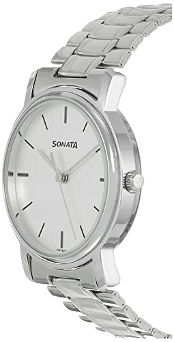 Specification: Sonata Quartz Analog White Dial Stainless Steel Strap Watch for Men-NS1013SM01