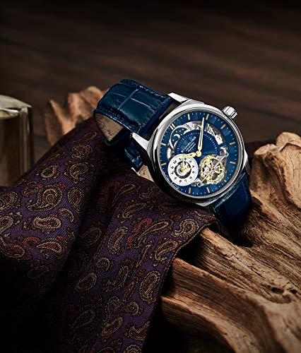 Stuhrling Mens Automatic Dress Watch Stainless Steel with Automatic Skeleton Mechanical Movement with Duel Time Sub-Dial and AM/PM Indicator and Adjustable Stainless Steel Link…